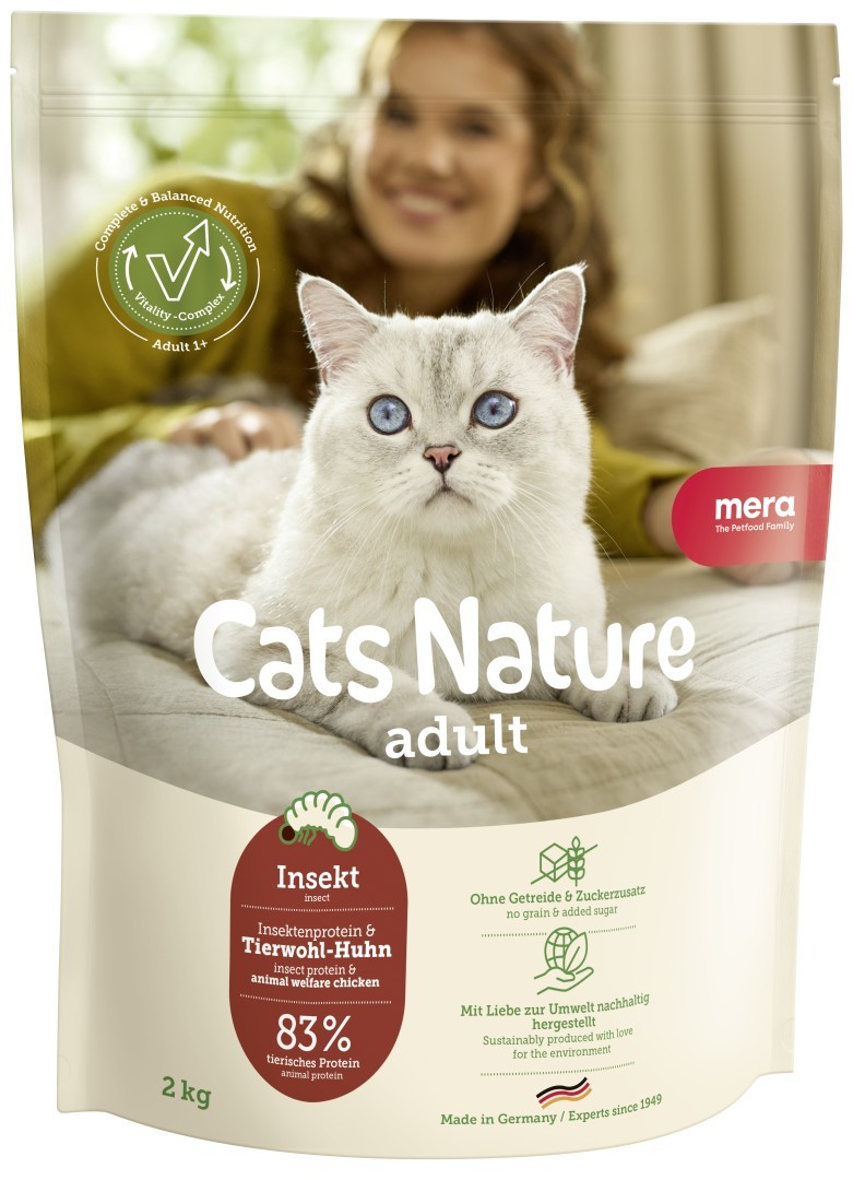 Composition: protéines de poulet (séchées, dont 20 % issus d’exploitations « Tierwohl » - pour le bien-être animal), flocons de pommes de terre, protéines d'insectes (14%, séchés, larves d'Hermetia illucens), petits pois, graisse de volaille, hydrolysats de protéines de volaille, marc de pomme, pulpe de betterave séchée, graines de lin (2,5%), substances minérales, huile de saumon (0,8%), lignocellulose 0,5%), huile de tournesol, inuline de chicorée (0,2%).