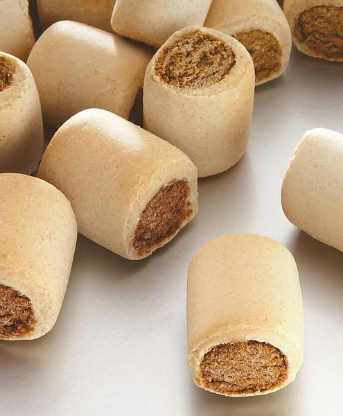 Analyse hondenkoekjes Meaty Rolls Mix: Eiwit 15,5 % / vetgehalte 8,0 % / ruwe vezels 2,0 % / ruwe as 5,5 %